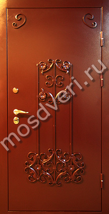 Входная железная дверь с элементами ковки — совмещает стильный внешний вид и высокую надёжность.